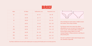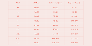 Als je klikt op je maat, zie je een model dat de slip of string in jouw maat draagt. Onze stof heeft een mooie stretch. Veel klanten mixen twee maten door elkaar afhankelijk van onze voorraad en ik draag zelf ook zowel L als XL. Ik heb zelfs dezelfde exemplaren kunnen blijven dragen tijdens en nu na mijn zwangerschappen (30kg up & down) and they are still perfectly fine!